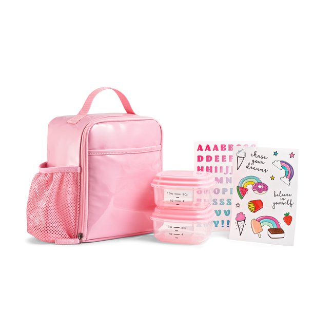 L O T G Kids Diy Reusable Pink Insulated Lunch Bag Includes 2 Pink 8oz Containers And 2 Sticker Sheets Walmart Com