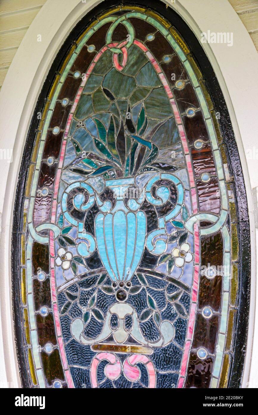 Alabama Troy College Street Historic Home Architectural Detail Oval Stained Glass Window Stock Photo Alamy